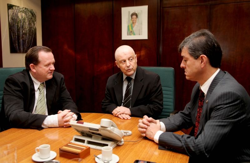 O Prefeito Sidnei Eckert esteve na última semana em Brasília, entre os dias 5 e 8, quando visitou diversos Gabinetes e Ministérios, em busca de pleitos e emendas parlamentares para projetos do município. Na ocasião, o Chefe do Executivo reuniu-se com o Ministro da Agricultura, Mendes Ribeiro Filho e o Deputado Estadual Edsom Brum, aos quais solicitou apoio para a implantação de leitos de Unidade de Terapia Intensiva (UTI) no Hospital São José. Também, Eckert aproveitou a viagem para negociar a possibilidade de recursos para o setor primário, com pedidos de emendas para a aquisição de uma nova retroescavadeira e pavimentações em estradas rurais do município, visando melhorar o escoamento da produção agrícola. Legenda: Prefeito Eckert junto ao Ministro Mendes e Deputado Brum. Fotos: Divulgação Texto: Assessoria de Imprensa