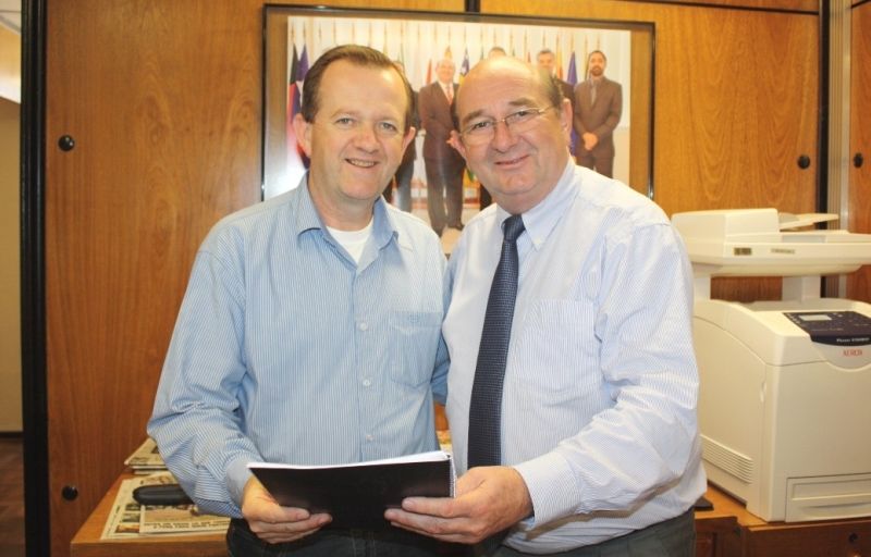 Em visita ao Gabinete do Deputado Aloísio Classmann (PTB), nessa terça-feira, 13, o Prefeito Sidnei Eckert recebeu a confirmação da assinatura de um convênio entre o município de Arroio do Meio e a Secretaria de Obras Públicas, Irrigação e Desenvolvimento Urbano do RS, voltado à ampliação das redes de água do município. A solenidade ocorre no dia 19, às 14h30min, no Palácio Piratini. O convênio beneficiará 14 famílias da localidade de Linha 32/Canudos, em um investimento total de R$ 63.750,00, sendo R$ 49.475,98 provenientes do governo estadual e R$ 14.271,02 de contrapartida do município. "Levar água potável para as nossas comunidades é de extrema importância para a qualidade de vida de quem reside no campo", afirma Eckert. Da Capital Estadual, Eckert seguiu para Brasília, atendendo convocação do vice presidente Michel Temer. Na Capital Federal, o Chefe do Executivo visita diversos gabinetes e ministérios em busca de pleitos para o município. Entre eles, esteve nessa quarta-feira, 14, com o Deputado Jerônimo Goergen, convidando-o para vir ao município no mês de junho, a fim de inaugurar as academias ao ar livre que estão sendo instaladas, por meio de emenda do parlamentar. O Prefeito aproveitou ainda a oportunidade para solicitar uma emenda de R$ 500 mil ao Deputado, afim de pavimentar a rua Alagoas. Legenda: Prefeito Sidnei Eckert em visita ao Gabinete do Deputado Classmann. Fotos: Divulgação Texto: Assessoria de Imprensa