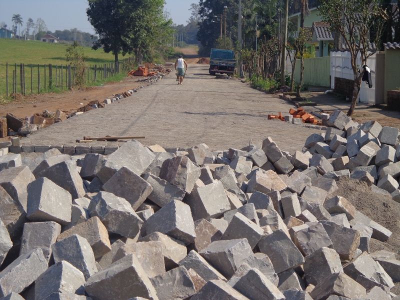 Os problemas com barro, poeira e buracos estão próximos do fim na rua São Cristóvão, bairro Barra do Forqueta, onde está sendo executada a pavimentação com pedras de basalto de parte da via. Com 2.030 m² de calçamento previstos, a obra contempla ainda a execução da rede de drenagem, meio-fio e dois redutores de velocidade (quebra-molas). Executada pelo método de pavimentação comunitária, a obra prevê o pagamento de 40% por parte do município e 60% pelos moradores. O investimento é de R$ 150.300,00. As vizinhas Márcia Bloss Rovea e Márcia Maria Rempel Kraemer comemoram. Em negociação há mais de dois anos para viabilizar a obra, em função de incompatibilidades entre moradores e entraves burocráticos, a dupla organizou diversas reuniões e um abaixo assinado para garantir a realização da obra. Agora, com o calçamento em andamento em frente às suas casas, elas até já programam uma inauguração entre vizinhos e proprietários dos terrenos. –Agradecemos o apoio da administração municipal, em especial da Secretaria de Planejamento, que nos ajudou a resolver os entraves burocráticos para que a obra saísse do papel–, afirmam. –Foi muito suado mas valeu a pena, estamos felizes com a obra–, finalizam. Legenda: Vizinhas que se mobilizaram para a realização da obra acompanham o assentamento das pedras na frente das suas casas. Fotos e texto: Maica Viviane Gebing