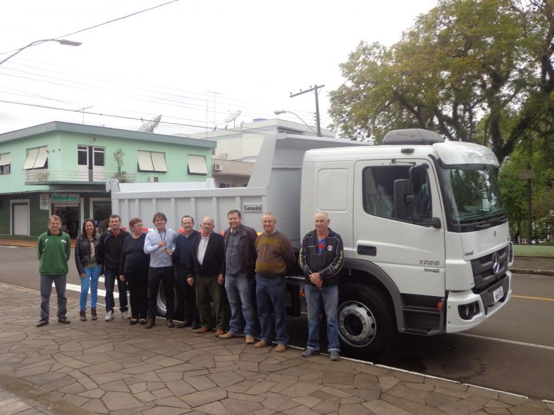A Secretaria da Agricultura recebeu um caminhão toco Mercedes Benz essa semana, com caçamba basculante de capacidade para sete metros cúbicos. Avaliado em R$ 208.800,00, o caminhão foi adquirido por meio de uma emenda parlamentar do Deputado Henrique Fontana, no valor de R$ 100 mil, via Ministério do Desenvolvimento Agrário, somado à contrapartida do município. A entrega do veículo foi feita pela Apomedil S.A., vencedora do processo licitatório. De acordo com o Secretário da Agricultura, Paulo Heck, o caminhão será destinado para atendimentos a propriedades rurais, acessos e estradas do interior do município. –Nosso foco está na melhoria do atendimento do setor primário, visando a infraestrutura geral das nossas localidades do interior e o bem estar dos moradores que residem e trabalham na área rural–, afirma Heck. Legenda: Prefeito Sidnei Eckert recebeu o veículo acompanhado de produtores rurais, Secretário da Agricultura e servidores responsáveis pela licitação. Fotos: Maica Viviane Gebing Texto: Assessoria de Imprensa