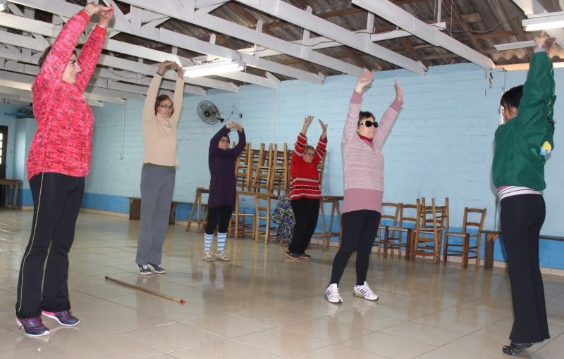 Mesmo com o termômetro marcando menos de 10 graus em todo o Estado, um grupo de jovens e corajosas senhoras reúne-se rigorosamente em segundas, quartas e sextas-feiras no salão comunitário da rua Tiradentes, para praticar atividades físicas. O desafio já se repete há sete anos, sob coordenação da enfermeira da Estratégia de Saúde da Família (ESF) Navegantes, Mariangela Romano dos Santos, e soma-se às demais ações da administração municipal de incentivo e promoção à saúde preventiva. Entre as alunas com idades variadas de 46 a 72 anos, destaque para Ivani da Silva, 46, deficiente visual por conta de complicações da diabetes. Com apoio das colegas, Ivani é conduzida desde sua casa, sendo auxiliada na locomoção para chegar caminhando até o local dos exercícios. –Me sinto mais disposta, com ânimo para viver–, afirma, referindo-se aos benefícios das atividades físicas em sua rotina. Com 72 anos, Reni Barcela afirma que os exercícios lhe dão disposição para chegar em casa e realizar as atividades do lar. Clevi Giovanella, 66, reforça que além dos benefícios dos exercícios, o grupo proporciona amizade e integração. Em plena forma aos 69 anos, Geni Lazzareti, se une a outras amigas do bairro São José e caminha cerca de dois quilômetros para participar do grupo, chegando aquecida para as atividades. Além das atividades físicas, o grupo tem acompanhamento quinzenal com profissionais da Clínica Universitária Regional de Educação e Saúde (Cures) do Centro Universitário UNIVATES, com quem aprendem dicas de nutrição e alimentação saudável. –Trata-se de um grupo de promoção à saúde–, reforça Mariângela. Esta atividade junta-se a demais ações de saúde preventiva promovidas pela administração municipal, desde o pré-natal até a Terceira Idade, por meio da Secretaria Municipal da Saúde e ESFs dos bairros Navegantes, Bela Vista e Aimoré. Mensalmente são realizados encontros com Grupos de Gestantes, Reeducação Alimentar, Diabéticos e Hipertensos, além de outros grupos de atividades físicas nos bairros Bela Vista, São Caetano e Centro. Interessados em saber mais informações e participar, podem entrar em contato pelos fones (51) 3716 1275 (Secretaria da Saúde) ou 3716 1166 ramal 303 (Departamento do Idoso). Legenda: Animadas, alunas espantam o frio praticando atividades físicas orientadas. Fotos: Maica Viviane Gebing Texto: Assessoria de Imprensa