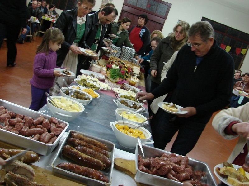 Incorporado ao calendário de eventos do município desde 2005, a Comissão Organizadora da Deutsche Abend, prepara para dia 31 de julho a 11ª edição da Noite Alemã, comemorativa ao Dia da Imigração Alemã no RS. As festividades iniciam às 19h, com celebração religiosa na igreja Evangélica de São Caetano e seguem no salão ao lado, com o tradicional cardápio das edições anteriores – variedade em pães, cucas, nata, schmier, kasshimier, linguiça, tripa recheada, lombo de porco, café com leite e demais especiarias que complementam a peculiar mesa germânica. As apresentações do grupo Helmuth Kuhn e a típica alegria da bandinha alemã complementam a programação. Neste ano, o evento ocorre em parceria com a Comunidade Evangélica São Caetano, com o apoio da Prefeitura Municipal. Os cartões são limitados e já estão à venda com integrantes da comissão organizadora e na Casa do Museu, a R$ 25,00 por pessoa. Legenda: Culinária típica e apresentações do Helmuth Kuhn são as principais atrações da noite. Fotos: Arquivo Texto: Assessoria de Imprensa