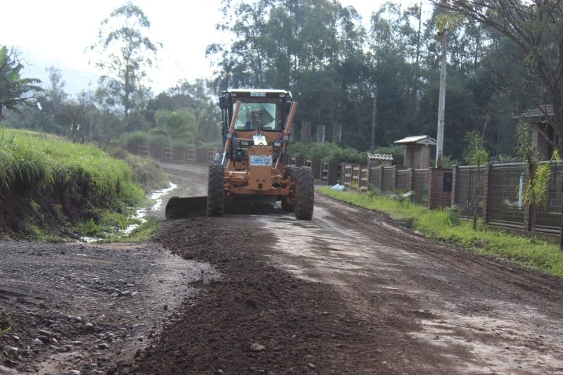 No primeiro dia de sol e tempo bom, depois de mais de duas semanas de chuvas fortes e consecutivas, a Secretaria de Obras iniciou várias frentes de trabalho para recuperar as estradas do município. Considerando os critérios de trafegabilidade e fluxo das vias, as melhorias iniciaram por Arroio Grande, Picada Arroio do Meio, Passo do Corvo, Rui Barbosa, Barra do Forqueta, Medianeira e rótulas e acessos ao longo da ERS 130. Segundo o Secretário de Obras, Paulinho Volk, os estragos causados pelo mau tempo podem ser vistos em todas as localidades. –Levará semanas para deixar as nossas estradas em dia–, afirma. –Além das estradas de chão, acumulou buracos nas vias asfaltadas, em função da intensidade da chuva–, alerta. Volk lembra que a situação é crítica em todo o Estado, e que as medidas já estão sendo tomadas para melhorar as condições de trafegabilidade. –Nos próximos dias faremos uma operação tapa buracos nos asfaltos–, afirma. Serviços particulares e para empresas estão suspensos por 60 dias, no mínimo. A orientação para quem tem urgência em algum acesso precário, é que providencie a compra de brita e/ou material necessário, que a Secretaria fará o transporte, dentro do que a legalidade permite. –Mais do que nunca precisamos da compreensão e paciência da comunidade. Não vamos medir esforços para resolver os transtornos o quanto antes–, explica Volk. Legenda: Estrada geral de Picada na terça-feira, durante a chuva, e na quarta-feira, após a recuperação emergencial da Secretaria de Obras. Fotos: Maica Viviane Gebing Texto: Assessoria de Imprensa