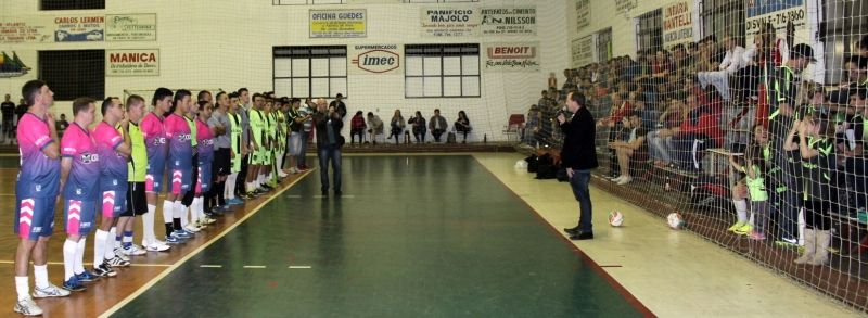Com o salão Paroquial lotado de público, aconteceu na última sexta-feira, 21, a abertura oficial do 6º Campeonato Municipal de Futsal. Na presença do Prefeito Sidnei Eckert, demais autoridades, comunidade, atletas e amantes do futsal, os cinco jogos da primeira rodada foram marcados por disputas equilibradas que resultaram em quatro vitórias e um empate. Pela categoria Veterano, o Ser Massa/Centro de Lazer Arroio Grande venceu o Só Ceva F.C. por seis gols a quatro. Pela categoria Feminino, Virakopus F.C. –A– aplicou três gols no Misturadão, que marcou apenas um. Pelo Força Livre Masculino, Virakopus F.C. e Tulipas Soccer empataram com quatro gols cada. Já o Só Barulho aplicou oito gols contra sete do Atrevidos/Clean Vale. Encerrando a primeira rodada, Atecubanos/Lancheria Dona Rita venceu por seis a quatro o Anote Unrefri. O atleta Felipe da Silva, da equipe Tulipas Soccer, foi suspenso por dois jogos. Nessa terça-feira, 25, o Ginásio Municipal do Glória sedia a 2ª rodada do Campeonato, a partir das 19h30min. O primeiro jogo será entre Sem Limite e Vat 69 (Livre Masculino). Logo após, Virakopus F.C. –B– enfrenta Pororocas (Livre Feminino). Às 21h, jogam Everest e Só Ceva (Livre Masculino) e encerrando a noite, jogo entre Maromba/Sul Frio e Máquina do Mal/Posto Black. O 6º Campeonato Municipal de Futsal é promovido e organizado pelo Conselho Municipal do Desporto e Lazer (CMDL). Mais de 300 atletas de 27 equipes estão envolvidos na competição que deve se estender até o final do mês de outubro. O acesso aos jogos é gratuito. Os objetivos são a integração, valorização e incentivo à prática de atividades desportivas na vida social da comunidade. Legenda 1: Prefeito Sidnei Eckert fez a abertura oficial do Campeonato; Fotos: Maica Viviane Gebing Texto: Assessoria de Imprensa