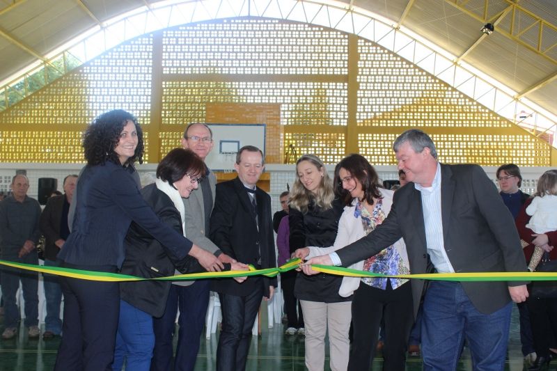 Já era próximo ao meio dia do domingo, 13, quando as crianças tomaram conta da Quadra Poliesportiva do bairro Bela Vista, marcando oficialmente a inauguração do novo espaço de esporte e lazer do bairro. Localizada nos fundos da Escola Municipal de Ensino Fundamental Bela Vista (travessa Gustavo Pochmann), a quadra de 980m² será utilizada pelos mais de 400 alunos do educandário que atende 70 crianças em tempo integral. Num investimento de R$ 690 mil, dos quais, R$ 506 mil provenientes do Governo Federal, via Fundo Nacional de Desenvolvimento da Educação – FNDE/PAC2, somado a R$ 184 mil de contrapartida do município, a quadra oferece arquibancadas laterais, estrutura metálica arqueada, plano de acessibilidade, vestiários/sanitários femininos e masculinos e demarcações para as modalidades de voleibol, futebol e basquete. Com a presença de autoridades, pais, professores e demais representantes da comunidade, a cerimônia iniciou com a contextualização da Secretária de Educação e Cultura, Eluise Hammes, que apresentou números da Educação local, que conta com investimento de 34% do orçamento do município. Ao relembrar a inserção da Escola Bela Vista no programa de turno integral Mais Educação, a Secretária recordou a necessidade da ampliação do espaço físico para os atendimentos, o que gerou a compra do terreno e posterior busca do projeto da quadra junto ao Governo Federal, num investimento total próximo a R$ 1 milhão. –Este é um investimento na qualificação da educação das nossas crianças, um espaço de aprendizagem e desenvolvimento–, concluiu. A diretora da Escola, Veranisa Fachinni, ressaltou a importância do esporte na formação do cidadão. –O esporte ensina a trabalhar em equipe, com disciplina, responsabilidade, união e respeito. Agradecemos a todos que se empenharam para a realização dessa obra. É um sonho realizado–, vibrou. Representando a Associação de Moradores do bairro (AMBEVI), o vereador Airton Schmitt, recordou as famílias que adquiriram o terreno para a construção da escola na década de 70, agradeceu e parabenizou todos os envolvidos na conquista. A Presidente da Câmara de Vereadores, Adiles Meyer, ressaltou o –momento ímpar, dia de festa e alegria–. –Estamos colhendo os frutos de um bom trabalho, com recursos bem aplicados e atendidos–, comemorou. Em seu discurso, o Prefeito Sidnei Eckert citou outras obras e projetos realizados recentemente no bairro e lembrou do trabalho em sintonia com o Governo Federal, na busca de recursos para viabilizar projetos. –Agradecemos muito a cada um que colaborou para que esse sonho se tornasse realidade. Que essa quadra seja de muito proveito para todos–, finalizou. O evento teve sequência com a bênção religiosa, corte da fita e acendimento da chama olímpica, liberando o espaço para as crianças interagirem. Legenda: Autoridades fizeram o desenlace da fita inaugural, liberando a quadra para a festa das crianças presentes. Fotos: Maica Viviane Gebing Texto: Assessoria de Imprensa