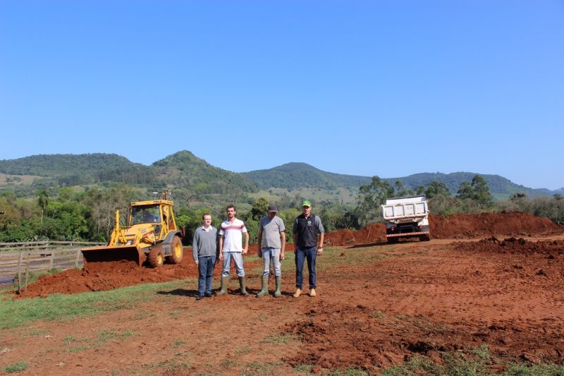 A Secretaria da Agricultura e a subprefeitura de Forqueta trabalharam recentemente na execução de terraplenagem na propriedade dos Franz, em Forqueta. O serviço preparou o terreno para a construção de um Freestall de 640m², com capacidade para 64 vacas em lactação. De acordo com Leonardo Franz, 25 anos, jovem sucessor da propriedade dos pais Normélio e Lori, o investimento na ampliação é de R$ 220 mil e visa facilitar a rotina de trabalho da família, que atualmente possui 45 vacas em lactação, com produção diária de 840 litros de leite. Outro investimento recente que a família fez em tecnologia e modernização, foi a aquisição de uma máquina misturadora de ração. –Se não fosse esse apoio da Prefeitura, o trabalho ia se tornar bem mais caro pra nós–, afirma. Mais de quatro mil horas de serviços de máquina foram prestados em pequenas propriedades rurais de Arroio do Meio entre 2014 e 2015, como política pública de incentivo aos pequenos produtores. Os dados são da Secretaria Municipal da Agricultura e destacam melhorias de acesso, enterro de animais e fechamento de silos. De acordo com o Secretário Paulo Heck, mais de 580 acessos receberam melhorias, 700 animais foram enterrados, 2.920 silos fechados e 2.300 cargas de saibro e cascalho transportados de forma gratuita neste período, conforme lei municipal de incentivo. Legenda: Prefeito Sidnei ECkert e subprefeito Leandro Berwanger acompanham serviço junto aos produtores Normélio e Leonardo Franz. Fotos: Maica Viviane Gebing Texto: Assessoria de Imprensa