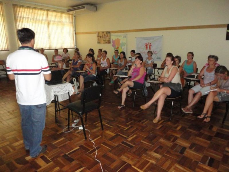 Na tarde do último dia 08, as servidoras responsáveis pelos serviços gerais das treze Escolas Municipais de Ensino Fundamental (EMEFs) e oito Escolas Comunitárias de Educação Infantil (ECEIs) do município, estiveram reunidas na Secretaria de Educação e Cultura (SEC), para uma palestra de reforço e esclarecimentos sobre a rotina de serviços dentro dos educandários e a importância da higiene em todas as atividades executadas no dia-a-dia. A tarde iniciou com a acolhida da Secretária de Educação e Cultura, Eluise Hammes, que parabenizou todas as presentes pelo Dia Internacional da Mulher e em seguida teve início a palestra com o vigilante sanitário, Eduardo Chiarelli. O profissional responsável pelo acompanhamento das condições de higiene nos estabelecimentos públicos e privados, esclareceu o conceito de saúde X higiene e abordou questões referentes à relação da cozinha com a higiene, cuidados com o armazenamento dos produtos de limpeza, higienização de sanitários, equipamento de proteção individual, importância do trabalho em equipe, entre outras questões referentes à rotina destas profissionais. Para encerrar o encontro, a nutricionista Rosaura Rabaioli conversou com as servidoras sobre assuntos pertinentes à alimentação escolar. Segundo a nutricionista, outro encontro dessa natureza deve acontecer em breve, destinado especialmente para as responsáveis diretas pela alimentação das escolas. O encontro foi promovido através de uma parceria entre as Secretarias de Educação e Saúde, visando qualificar ainda mais o trabalho desenvolvido nas escolas do município. Legenda: Vigilante sanitário repassou dicas de higiene para servidoras das escolas. Fotos: Maica Viviane Gebing Texto: Assessoria de Imprensa