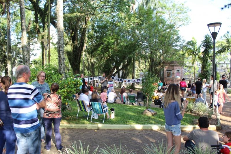 São Pedro colaborou e o dia ensolarado levou amantes da arte, música e fotografia à Praça Flores da Cunha, na tarde no último domingo, 8. No espaço localizado em frente à Casa do Museu, a Administração Municipal e o Museu Público realizaram mais uma edição do Domingo com Arte, integrando o projeto cultural Tem Barulho no Museu. Entre as atrações, show musical com a banda Rock 60, exposição fotográfica e entrega de certificados de alunos participantes de oficinas de fotografia desenvolvidas por meio do projeto cultural, Feira de Artesanato e Troca de Livros, numa iniciativa da Biblioteca Pública Municipal. De acordo com a Coordenadora do Departamento de Cultura, Angelica Diefenthaler, o objetivo do projeto é mostrar à comunidade que museus são casas vivas, –São espaços de muito barulho, mas, muitas vezes, silencioso. A comunidade desconhece os bastidores do nosso trabalho–, comenta. –Foi preciso levar parte deste barulho à praça para que as pessoas percebessem o museu no outro lado da rua, um passo importante na caminhada de democratização do acesso aos espaços públicos. Atravessamos a rua e convidamos a comunidade a retribuir o gesto–, explica. E a ideia surtiu efeito, já que 60 pessoas que prestigiaram a programação na praça, aproveitaram para conhecer a casa que abriga o Museu Público Municipal. –A proposta de levar arte e entretenimento para a praça nas tardes de domingo também foi positiva, sentimos que a comunidade aprovou e novas ações neste sentido deverão surgir–, projeta. As amigas Isabel Wilsmann e Isabel Spaniol, 15 anos, aprovaram a programação. Convidadas pela amiga Verônica Lestes, expositora participante da oficina de fotografia, aproveitaram para curtir o show e trocar livros. –Achei ótimo. Aproveitei para trocar livros que já tinha lido por outros que quero ler–, afirmou uma das estudantes. Da mesma forma, as amigas Vera Heineck e Salete Cavalheiro, passearam acompanhadas do chimarrão pelos diversos ambientes, aproveitando para conhecer o Museu Municipal. –Nas fotos a gente vê com outro ponto de vista paisagens e lugares conhecidos da cidade–, referem-se à exposição fotográfica. A aluna da oficina de fotografia, Nicole Hofle Rhoden, 30, levou a família para conferir a programação e suas fotografias expostas. –Sempre tive vontade de fazer um curso de foto e a oportunidade surgiu logo após fazer uma viagem e me decepcionar com as fotos que tinha tirado do local–, conta a aluna de fotografia, que inclusive comprou uma câmera nova no decorrer da oficina. O projeto Tem Barulho no Museu iniciou em março com a oferta de atividades gratuitas à comunidade, incluindo sessões de cinema no Cineclube Real, oficinas de graffiti, técnica vocal e fotografia. A iniciativa conta com recursos do Prêmio Empreendedor Cultural, através do patrocínio da AES SUL. O Museu segue aberto para visitação guiada à exposição –Retratos da História da Saúde em Arroio do Meio – Um recorte no tempo 1900-1960–, com acompanhamento da coordenadora técnica do Museu Público Municipal, professora Carla Schroeder. Legenda: Espaço da Praça Flores da Cunha localizado em frente ao Museu Municipal, ficou repleto de admiradores da arte, música, leitura e fotografia. Fotos: Maica Viviane Gebing Texto: Assessoria de Imprensa