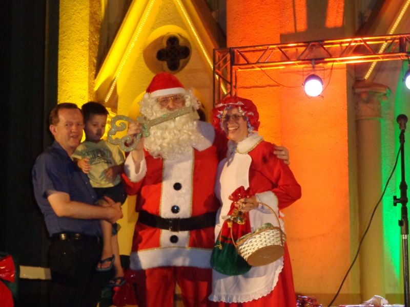 ARROIO DO MEIO – Pela segunda semana consecutiva, a Praça Flores da Cunha e a Rua de Eventos serão palco de atrações especiais gratuitas neste domingo, 6. Especialmente decorados para o Natal, os espaços públicos convidam a comunidade para participar de mais uma edição do Domingo com Arte e da tão esperada chegada do Papai Noel, enriquecida este ano com a peça teatral O Natal da família Gentil. A programação inicia às 17h30min, na Casa do Museu, em frente à praça, marcando o encerramento do projeto Tem Barulho no Museu. Na ocasião ocorre o lançamento do livro Arnesto Dalpian: história, vida e realizações, de autoria do ex-prefeito Paulo Steiner, com a presença de Simone Buttini interpretando o hino Vale do Taquari, com letra e música de Ivete Kist e Maria Angelica Halmenschlager Schmidt. Às 18h, na parte superior da praça Flores da Cunha, ocorre a entrega dos certificados das oficinas de técnica vocal, oportunizadas pelo projeto aos integrantes de corais locais. Além disso, a comunidade poderá conferir feira de artesanato, feira de troca de livros e a participação do Rotaract com a ação Doce Abraço, com distribuição de doces, venda de garrafas natalinas decoradas e divulgação da entidade. O Museu Público Municipal também marcará presença na praça, com a exposição Fotomemória. Enquanto ocorre a programação na praça, a Casa do Museu mantém as portas abertas para a comunidade prestigiar a exposição Entre o Preto e o Branco: Vida, do Atelier de Pintura de Ivoni Dutra Rheinheimer, além dos trabalhos das alunas de cerâmica, no subsolo da casa. Às 19h30min, o público é convidado a descer as escadas da praça e se acomodar na Rua de Eventos, onde o grupo teatral Luz e Cena apresenta a peça O Natal da família Gentil. Numa história sensível e emocionante, que mistura teatro e música, a peça remete a uma reflexão sobre o desejo pelos presentes e o verdadeiro sentido do Natal. O evento culmina com a chegada do Papai Noel, para alegria das crianças. A promoção é da Administração Municipal, Secretaria de Educação e Cultura e Núcleo Municipal de Cultura. Saiba mais: **O projeto Tem Barulho no Museu foi contemplado com recursos do Prêmio Empreendedor Cultural patrocinado pela AESSul e ofertou gratuitamente oficinas de grafitti, fotografia e técnica vocal, além de sessões cineclubistas e Domingos com Arte. As atividades iniciaram em março e encerram neste domingo. Uma das ações do projeto, com foco na educação patrimonial, está na inserção de fotografias no corredor de acesso aos banheiros públicos da praça. Uma coletânea de imagens florais, captadas pelos alunos das oficinas de fotografia, será fixada no local, juntando-se às demais ações de revitalização do espaço. **A Feira de Troca de Livros, promovida pela Biblioteca Pública Municipal Barão do Rio Branco, tem por objetivo incentivar a leitura, fazendo circular livros já lidos, dando oportunidade a outras pessoas interessadas pela publicação. Para participar basta levar livros de quaisquer gêneros literários, Cds e DVDs e trocá-los por outro de seu interesse. Os livros devem ser do gênero literário e estar em bom estado de conservação, sem folhas rasgadas, faltantes ou com rasuras.