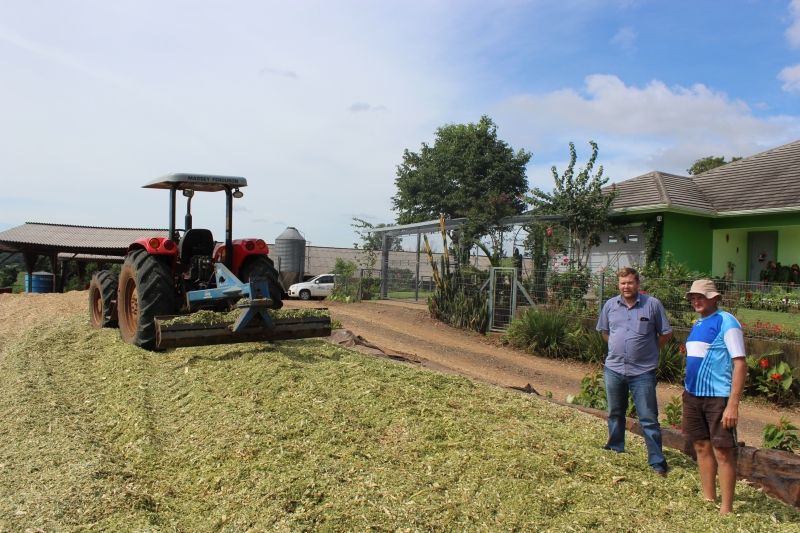 ARROIO DO MEIO – Visando facilitar a rotina de trabalho, reduzir custos com o transporte e garantir a qualidade da silagem para o gado, produtores rurais do Município vêm investindo na construção de silos trincheira. Instalados próximos às residências dos produtores e local de trato dos animais, o método economiza tempo, dinheiro e espaço, uma vez que armazena grande quantidade de alimento por longo período num único local, ao fácil alcance do produtor, indiferente das intempéries do tempo. Com 75 animais em sua propriedade, o produtor Jandir Steffens e sua família, de Forqueta Baixa, são adeptos ao silo trincheiro desde 2014 e confirmam as vantagens do investimento. –Não dá barro, utilizo uma única lona e consigo aproveitar 100% do alimento, que é de total qualidade–, afirma. –E o melhor de tudo é que reduz o custo da produção–, incentiva. Steffens tem espaço para armazenar 20 hectares de silagem, mas fará 14. A previsão é que o alimento dure 10 meses, o que lhe dá tranquilidade para o período de transição das pastagens. –Se fosse o método tradicional, teria que fazer uns 20 silos nas roças para compensar este–, compara. Segundo o Secretário da Agricultura, Paulo Heck, além das vantagens já citadas, o investimento em silos trincheiras acarreta em economia para o Município, liberando as máquinas para a execução de outros serviços do setor primário e infraestrutura geral do interior. De dezembro a abril, cerca de dois mil silos são fechados em Arroio do Meio, o que limita os demais atendimentos a estradas e área rural. Legenda: Secretário Heck e produtor Steffens junto ao silo. Ao fundo é possível ver a residência do produtor e o local de trato dos animais; Fotos: Maica Viviane Gebing Texto: Assessoria de Imprensa