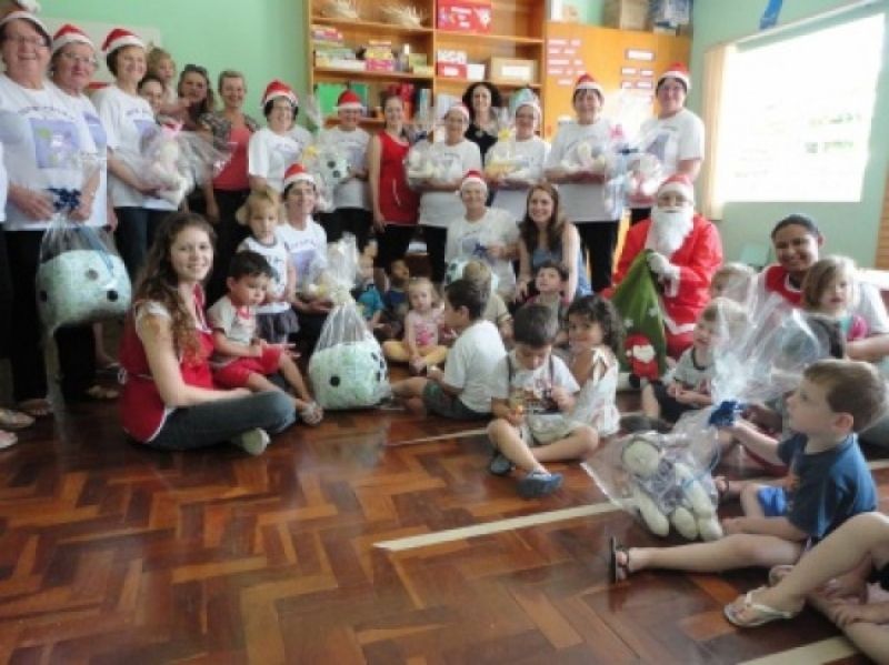 Bonecas e dados de pano fizeram a alegria das crianças das oito Escolas Comunitárias de Educação Infantil (ECEIs) do município esta semana. O presente antecipado de Natal foi entregue pelo Grupo de Convivência Alto Astral, do Centro de Referência da Assistência Social (CRAS). Ao todo, 64 bonecas e 32 dados foram doados às escolas. O trabalho de confecção dos brinquedos já vinha sendo realizado durante todo o ano com as idosas que participam de encontros semanais no CRAS, localizado no sub solo da Prefeitura Municipal. Sob orientação das assistentes sociais Fernanda Jachetti e Renata Weber, professora de artesanato Gládis Labres e participação da estagiária Roseleni Feil, as componentes do Grupo foram estimuladas a reproduzir brinquedos que lembrassem as suas infâncias, entrando no consenso de confeccionar bonecas e dados de pano. Desde 2009 a administração municipal vem trabalhando na remodelação e ampliação do espaço físico e equipe de trabalho do CRAS. Ao todo, 16 grupos são atendidos, envolvendo famílias, idosos, gestantes, jovens, beneficiários do Bolsa Família e catadores, em oficinas educativas e de geração de renda. –Através de um profissional de artesanato ensinamos técnicas que podem ser usadas pelos participantes como forma de geração ou ampliação de renda, com o objetivo de melhorar as condições de vida destas pessoas–, explica Fernanda. Entre as oficinas realizadas nos encontros semanais dos grupos, estão a confecção de edredons, roupas de cama, utensílios de argila, decoração de chinelos e arte em madeira. O material para a realização das oficinas é disponibilizado gratuitamente aos participantes, através de recursos municipais e federais. As Assistentes Sociais afirmam que os principais objetivos do projeto são o trabalho do enfrentamento das dificuldades com o grupo, fortalecimento de vínculos comunitários e familiares, geração de renda mínima aos participantes e resgate da auto-estima, estimulando a inclusão social destes cidadãos através dos Grupos.