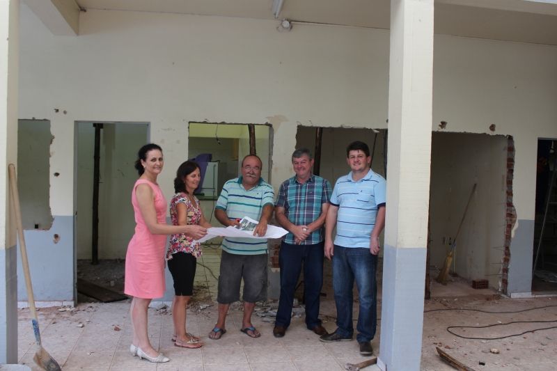 ARROIO DO MEIO – As refeições da Escola Municipal de Ensino Fundamental (EMEF) Bela Vista terão um sabor especial na volta às aulas deste ano. Iniciou esta semana a execução de 51,60m² de ampliação e 28m² de reforma do refeitório, além da construção de uma nova secretaria na frente da escola. O investimento é de R$ 81 mil, provenientes de recursos próprios do Município. A execução está por conta da Gege Construções Ltda, vencedora de processo licitatório e deve ser concluída em três meses. Atualmente a escola tem 386 alunos matriculados, mais 76 inscritos no turno oposto. De acordo com a diretora Veranisa Fachini, o refeitório é o mesmo há mais de 30 anos, período em que a escola passou por várias ampliações e teve o número de alunos multiplicado. Entre as maiores dificuldades apontadas em relação à estrutura existente, estão a falta de espaço, conforto e ventilação para alunos e servidores, uma vez que cozinha e refeitório estavam instalados juntos. –Agora vamos ter os ambientes separados por uma bancada, com mais segurança, conforto durante as refeições e janelas para ventilação–, adianta. –Além disso, a nova secretaria nos dará a visão do portão e facilitará o acesso dos pais e alunos, por estar mais próxima da entrada–, comemora. Além da escola Bela Vista, mais três escolas municipais estão com obras em andamento ou início programado para os próximos dias, num investimento de R$ 500 mil, provenientes de recursos próprios do Município. Na EMEF João Beda Körbes, bairro Aimoré, o telhado já foi trocado de forma integral e uma nova sala de aula está sendo construída, num investimento de R$ 150 mil. Na Barra do Forqueta, iniciou essa semana a construção de uma nova sala de aula no subsolo do salão da comunidade, afim de atender os alunos do turno oposto. O investimento é de R$ 92 mil. Já em São Caetano, inicia nos próximos dias a execução de três novas salas de aula, num investimento de R$ 165 mil. O objetivo, segundo a Secretária Municipal de Educação e Cultura, Eluise Hammes, é ampliar os espaços físicos para qualificar e ampliar os atendimentos de tempo integral dos alunos e proporcionar melhores condições de trabalho aos professores e servidores das escolas. –As ampliações e melhorias vem para atender a legislação vigente e possibilitar ao ambiente escolar uma estrutura que proporcione cada vez mais a aprendizagem e o desenvolvimento dos alunos–, reforça. Com 13 EMEFs e 2.090 alunos matriculados, Arroio do Meio investe anualmente cerca de R$ 15 milhões em Educação, o que representa 34% do orçamento do Município, enquanto a lei exige 25%. Legenda: Prefeito em exercício, Áurio Scherer, Secretária de Educação Eluise Hammes, Secretário de Planejamento Henrique Meneghini, diretora da escola Veranisa Fachini e representante da empresa responsável pela obra acompanham a transformação do antigo espaço. Fotos: Maica Viviane Gebing Texto: Assessoria de Imprensa
