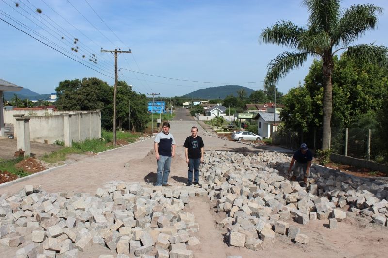 ARROIO DO MEIO – Com 50% da pavimentação executada, a rua Friedold Kuhn, no bairro Aimoré, já evidencia as vantagens que a obra representará para o local. Realizada numa parceria entre moradores e Poder Público, a obra está a cargo da empresa Progetto Sul Ltda e deve ser concluída até junho. Ao todo, serão 4.081,91m² de pavimentação com rede de drenagem, beneficiando 30 lotes/famílias, além da área pública municipal, onde estão instalados o Posto de Saúde (ESF) e academia ao ar livre do bairro. O investimento é de R$ 305.546,46. Simultaneamente estão sendo executadas a pavimentação associativa na rua dos Jasmins/Bela Vista (em fase de conclusão) e as pavimentações asfálticas em Forqueta Baixa, Palmas e Picada Arroio do Meio, além de obras de ampliações e melhorias nas Escolas Municipais Bela Vista, São Caetano, Barra do Forqueta e João Beda Körbes (Aimoré). Outras obras previstas estão em processo de licitação, contemplando pavimentações nas ruas do Loteamento Sete de Setembro, no bairro São Caetano e rua São Miguel, na Barra do Forqueta. Legenda: Prefeito Sidnei Eckert e Secretário de Planejamento Henrique Meneghini acompanham andamento da obra. Fotos: Maica Viviane Gebing Texto: Assessoria de Imprensa