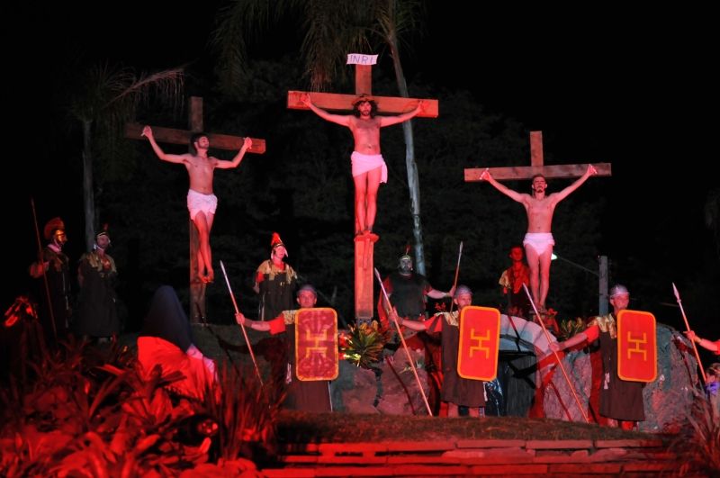 ARROIO DO MEIO – Toda a comunidade está convidada a assistir e se emocionar com a encenação da 18ª Paixão e Morte de Cristo – Via Sacra, a realizar-se na Sexta-feira Santa, 25, no Distrito de Forqueta. O espetáculo será apresentado no Cenário da Lagoa, localizado ao fundo da Igreja São Vendelino, a partir das 20h. Não haverá cobrança de ingressos, mas serão aceitas doações espontâneas. A Via Sacra de Forqueta é viabilizada com a participação de mais de 100 atores da comunidade local, que iniciam a preparação semanas antes, envolvendo-se na contextualização dos personagens e do cenário. Cerca de cinco mil pessoas são esperadas para o espetáculo que tem duração de duas horas. No local haverá ainda exposição e venda de produtos coloniais e artesanato. Legenda: Atores de Forqueta encenam a paixão e morte de Cristo. Fotos: Divulgação/arquivo Texto: Assessoria de Imprensa