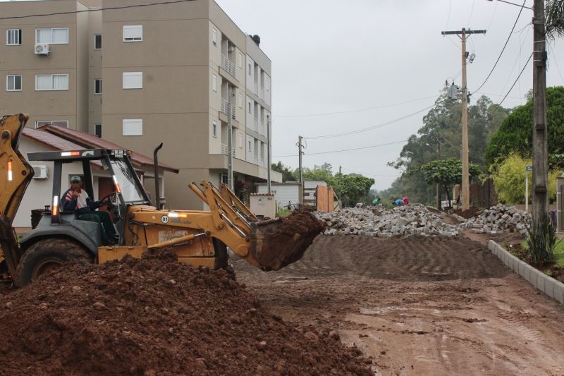 ARROIO DO MEIO – Iniciou na última semana a execução da pavimentação com pedras de basalto da rua Antônio Fornari, bairro Bela Vista, no trecho que inicia na VRS 811 e segue em direção ao acesso do bairro Medianeira. A pavimentação beneficia 23 lotes, num total de 1.526,20m² de área a ser pavimentada. A obra está sendo executada de forma associativa, que prevê o financiamento da obra- material, contratação da empresa e mão de obra – por parte dos moradores. A Prefeitura, por sua vez, elabora o projeto de engenharia, disponibiliza máquinas para a execução dos serviços de drenagem, terraplenagem e patrolamento da via, além de acompanhar e fiscalizar o andamento da obra. Nesta obra, o Município arcará também com 121,42m² de embocaduras das vias transversais e VRS. A execução está por conta da Mayer e Noronha Ltda, contratada pelos moradores e deve ser concluída em até 50 dias. Interessados em saber mais detalhes sobre os moldes da pavimentação associativa, podem procurar a Secretaria de Planejamento/Prefeitura, para esclarecer dúvidas e posteriormente encaminhar o projeto, junto à aprovação do demais moradores da via. Mais informações pelo fone (51) 3716 1166 ramal 219.Legenda: Máquina da Prefeitura finaliza serviços enquanto a pavimentação é executada ao fundo.Fotos: Maica Viviane Gebing Texto: Assessoria de Imprensa