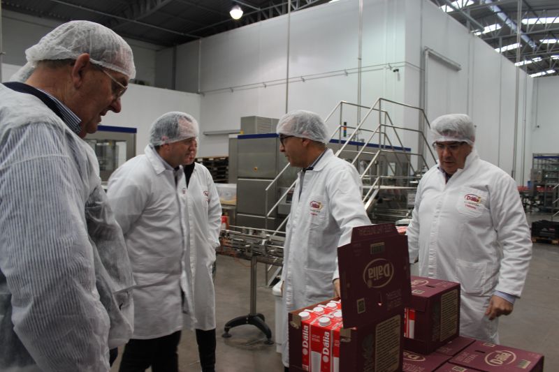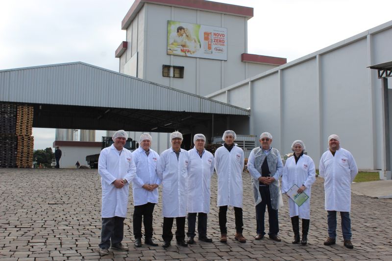ARROIO DO MEIO – O Prefeito Sidnei Eckert esteve no Complexo Industrial Lácteo da Dália Alimentos, em Palmas, na última semana. Acompanhado do vice Áurio Scherer, Secretária da Fazenda Jaqueline Kuhn e Coordenador da Secretaria de Indústria e Comércio, Ivan Batista Fuhr, foi recebido no local pelo Presidente Executivo, Carlos Alberto de Figueiredo Freitas, Vice-Presidente do Conselho de Administração, Pasqual Bertoldi, Gerente da Divisão Produtos Lácteos, Antônio Salazar e Conselheiro regional Rubino Rahmeier.