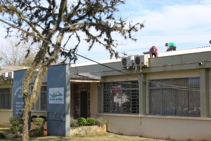 ARROIO DO MEIO – O prédio onde está instalada a Secretaria Municipal de Educação e Cultura (Rua Dr. João Carlos Machado, 1000/Centro) passa por reforma total do telhado, com troca das madeiras de sustentação e da cobertura com telhas de fibrocimento. As melhorias são executadas por empresa terceirizada, contratada pela CNEC – Campanha Nacional de Escolas da Comunidade, proprietária do prédio.
