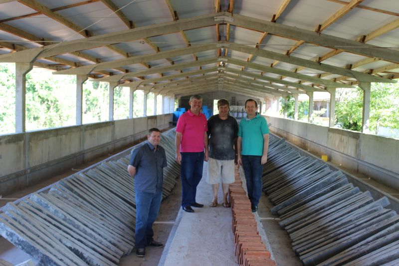 ARROIO DO MEIO – O primeiro pavilhão climatizado de suínos da BRF no Rio Grande do Sul deve alojar os primeiros animais em janeiro de 2017, na propriedade de Jair Eckert, localidade da Cascalheira. Com a obra em pleno vapor, o produtor recebeu o Prefeito Sidnei Eckert, vice Áurio Scherer e Secretário da Agricultura Paulo Heck essa semana, enquanto as máquinas do Município executavam serviços na propriedade, como forma de incentivo ao empreendimento rural e desenvolvimento econômico local.