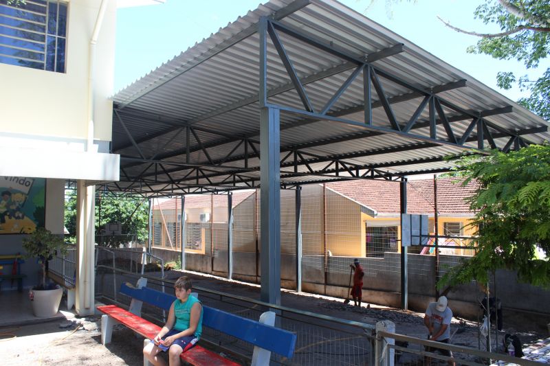 ARROIO DO MEIO – Foi concluída na última semana a cobertura metálica da Quadra Esportiva localizada junto à Escola Municipal de Ensino Fundamental (EMEF) Tancredo Neves, bairro Novo Horizonte. Segundo a diretora Carla Padilha, a cobertura da quadra permite o uso do espaço em dias de sol e chuva, indiferente da instabilidade climática. “Utilizamos o espaço para recreação, programa de turno integral, aulas de educação física e outras atividades. É um espaço muito importante para a escola”, afirma. Com 120 alunos matriculados, a escola oferece o programa de Turno Integral Mais Educação, frequentado pela maioria.