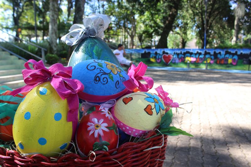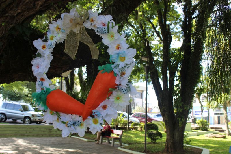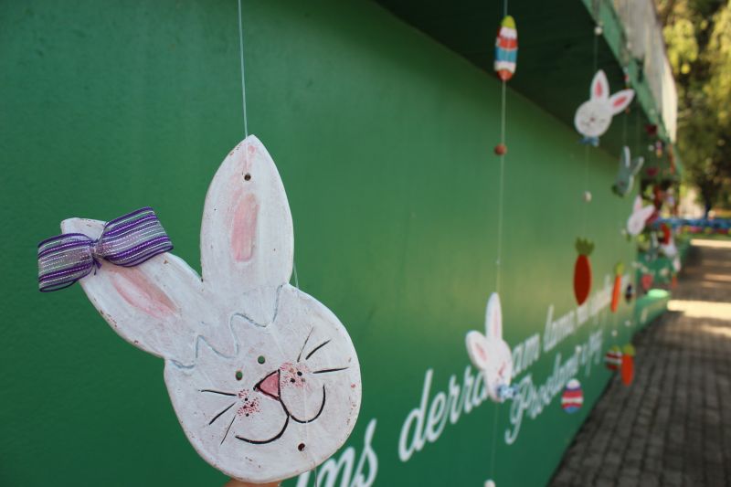 Há três semanas da Páscoa, o espaço estará decorado com 700 casquinhas de ovos pintadas, 500 cenouras e 500 corações de cerâmica, duas casinhas com personagens da Família Coelho, cenouras, guirlandas de flores, caminho da Via-Sacra e outras surpresas. O trabalho é resultado da união de esforços entre Poder Público e envolvimento voluntariado de mais de 100 pessoas da comunidade, incluindo grupos de idosos, crianças, adolescentes, grupos de Saúde Mental do Hospital São José, Associação das Artesãs, entre outros. As oficinas foram realizadas na Casa do Museu durante o mês de março e contou ainda com doações de comerciantes locais.