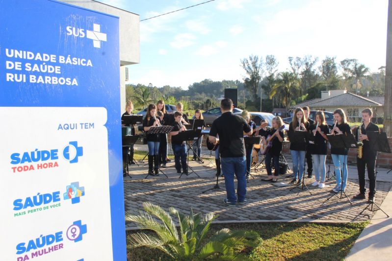 ARROIO DO MEIO – Ao som do grupo instrumental da Escola Municipal de Ensino Fundamental Princesa Isabel, a Estratégia de Saúde da Família (ESF) Rui Barbosa completou seu primeiro ano de atividades na quarta-feira, 28. O evento especial realizado em frente à unidade de saúde contou com depoimentos da equipe de profissionais, moradora usuária dos serviços e Secretário Municipal da Saúde, enquanto os atendimentos aconteciam normalmente na parte interna do Posto.