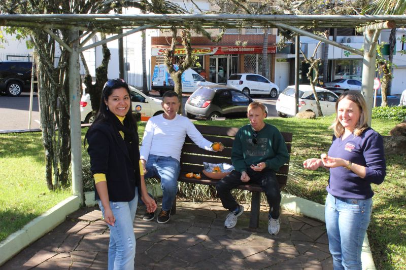 No meio-dia dessa quarta-feira, 5, ocorreu a segunda edição do Bergamoteando na Praça. Comerciantes e demais trabalhadores do Centro e bairros e simpatizantes da fruta mais popular do inverno, aproveitaram o intervalo do almoço para degustar mais de 500 bergamotas e encontrar amigos na Praça Flores da Cunha.