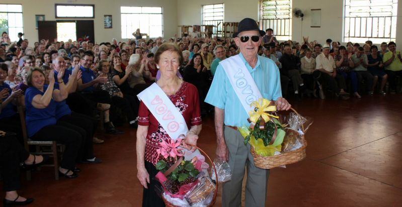 A surpresa da tarde ficou por conta da escolha do Vovô e da Vovó do ano. O critério de avaliação foi o maior número de netos. O neto mais velho foi utilizado para o desempate. Ema Alberton, 87 anos, 23 netos, sete bisnetos, moradora do Centro e Romaldo Germano Schwarzer, 87 anos, 18 netos e cinco bisnetos, morador de Forqueta Baixa, foram presenteados com faixas, flores e mimos.