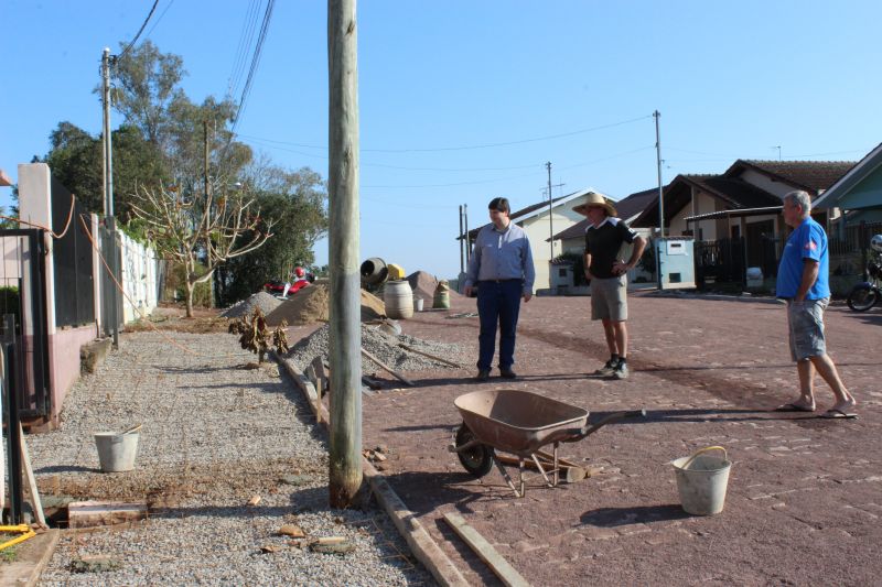 Bom exemplo no Loteamento Antares, bairro Bela Vista, o morador Paulo Neumann e os vizinhos aproveitaram a pavimentação da rua das Violetas para providenciar a execução da calçada de passeio em frente às casas. “Fica mais bonito e organizado”, comenta.