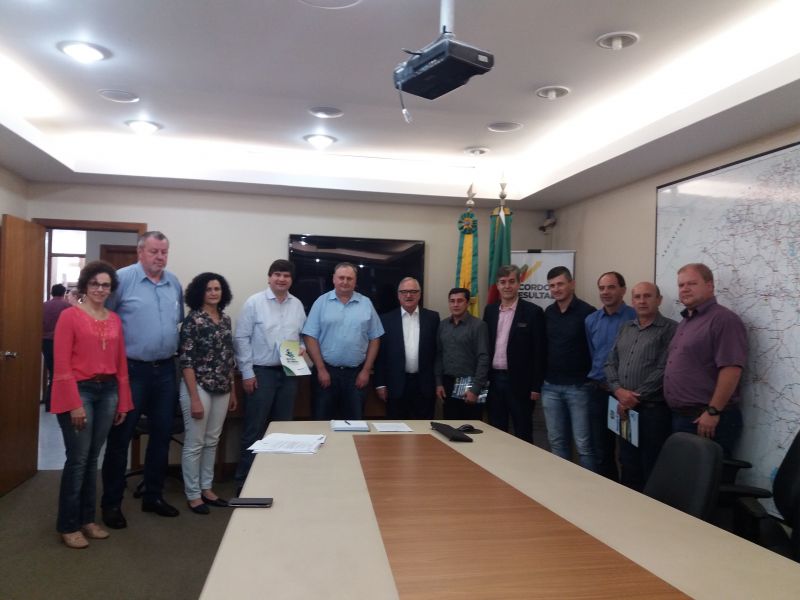 ARROIO DO MEIO – O Prefeito Klaus Werner Schnack e a vice Eluise Hammes participaram de audiência com o Secretário de Transportes Pedro Westphalen, na terça-feira, 29, para tratar dos acessos asfálticos entre Arroio do Meio e os municípios de Travesseiro e Capitão. O encontro foi intermediado pelo Deputado Estadual Edson Brum e contou ainda com os vereadores Marcelo Schneider, Rodrigo Kreutz e José Elton Lorscheiter e Prefeitos de Capitão, Paulo Scheidt, e de Travesseiro, Genésio Hofsteter.