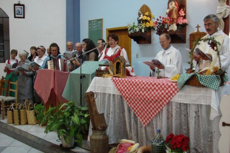O grupo Le Donne Sorelle recepcionou cerca de 350 pessoas no seu tradicional filó festivo, o 2º Jantar Italiano, realizado no último sábado, dia 12, no salão Cinquentenário Bela Vista. A gastronomia esteve sob o comando de Lúcia Gasparotto Cadore, que juntamente com as demais integrantes do Le Done Sorelle, foram responsáveis pelo preparo do delicioso cardápio. A animação ficou por conta da banda Os Tropicais. O evento integrou as comemorações do Dia da Etnia Italiana no Rio Grande do Sul, cuja programação encerra com missa celebrada em dialeto italiano pelos padres Benjamim Borsatto e Paulo Hoffmann no próximo dia 22, às 19h, na igreja Matriz. A comunidade é convidada a prestigiar mais este momento de integração e valorização da cultura italiana no município. A programação conta com o apoio da Prefeitura Municipal, através da Secretaria de Educação e Cultura e Departamento de Serviços Urbanos. Legenda: Celebração religiosa integra programação do Dia da Etnia italiana no RS. Fotos: Divulgação Texto: Assessoria de Imprensa