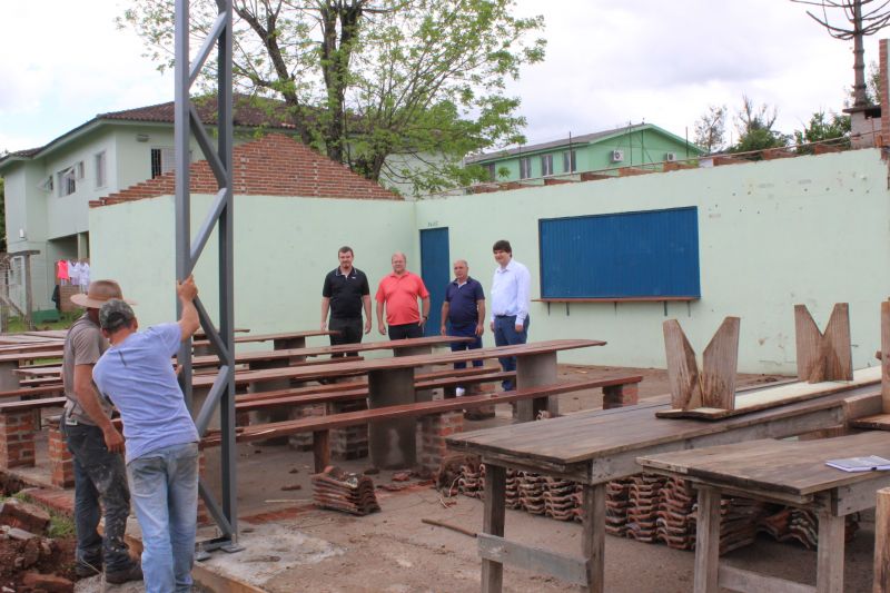 ARROIO DO MEIO – A Administração Municipal iniciou na última semana a obra de revitalização e modernização da Sede Esportiva do Bairro Navegantes. A reestruturação inclui a instalação de novos pilares e cobertura de estrutura metálica com telhas aluzinco, recuperação do forro da copa e da cozinha com PVC, construção de novas churrasqueiras revestidas com tijolos refratários e instalação elétrica.