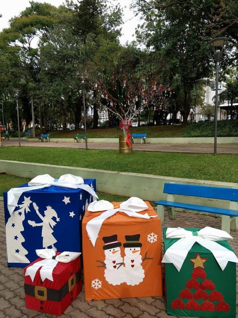 São papais noéis, bengalas, caixas gigantes de presentes, guirlandas, Sagrada Família e demais enfeites natalinos construídos pela união de muitas mãos, a partir da parceria entre Administração Municipal, que adquiriu o material, e comunidade, que se envolveu de forma voluntária na confecção. Além disso, a iluminação natalina também foi instalada, num investimento em torno de R$ 40 mil.