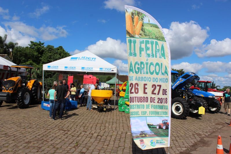 ARROIO DO MEIO – Mais de três mil pessoas prestigiaram a 2ª Feira Agrícola de Arroio do Meio, realizada no Distrito de Forqueta nos dias 26 e 27 de outubro, com 27 expositores demonstrando seus produtos e serviços, incluindo agropecuárias, empreendimentos de maquinários, implementos, manutenção e revenda de máquinas agrícolas. A programação iniciou na manhã da sexta-feira, com pronunciamentos de autoridades, participação do Coral Municipal e descerramento de placas históricas na Subprefeitura e Igrejas de Pedra e São Vendelino. A manhã seguiu com visitação à Feira e apresentações de cases de quatro jovens empreendedores de diferentes segmentos urbanos e rurais, com destaque para os arroio-meenses Anna Laura Neumann, que falou sobre Marketing Pessoal e Diego Simonetti, que abordou sua experiência com Energia Solar.