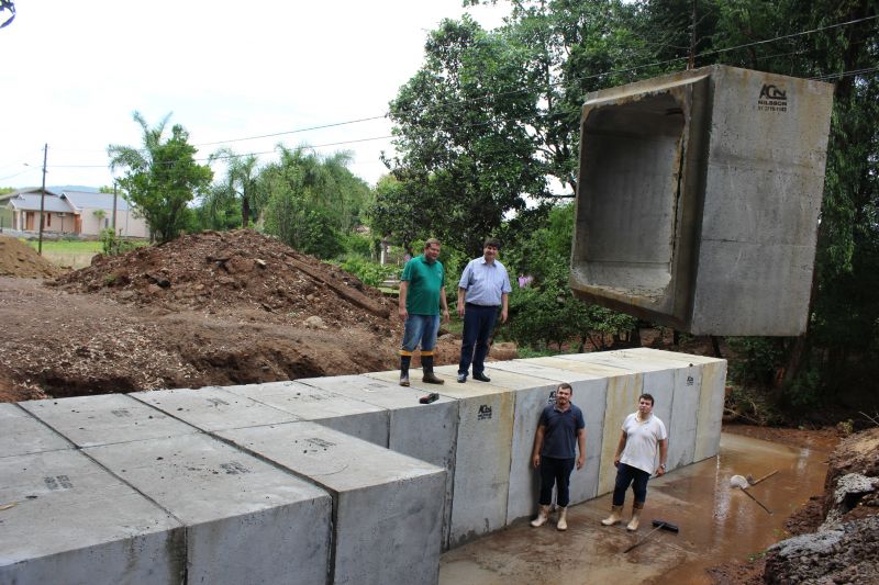 ARROIO DO MEIO – As Secretarias Municipais de Obras e Planejamento executaram na última semana uma nova galeria pluvial na rua Dona Rita – trecho que liga a rua Presidente Vargas/ERS 130 ao Distrito Industrial. A galeria é composta por 32 peças quadradas de 1,5 metro, instaladas em linha dupla. O investimento é de R$ 37.760,00 em peças adquiridas na empresa Nilson & Cia Ltda, via processo licitatório, proveniente de recursos próprios. A mão de obra foi executada pela equipe de servidores públicos, o que reduziu o custo da obra.