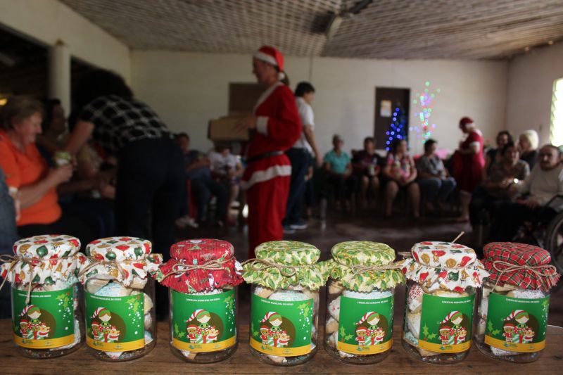 Os encontros são realizados de acordo com as agendas de confraternização e encerramento das atividades dos grupos. Na ocasião são entregues vidros decorados de forma personalizada, recheados com doces de Natal. O trabalho é fruto da mão de obra de voluntárias que participam semanalmente de grupos de Atividades Físicas promovidas pelo Departamento da Terceira Idade, e se envolveram nas oficinas de artesanato específicas para este fim. A novidade deste ano é a entrega de uma lembrança especial para a pessoa mais idosa presente no encontro. Como agradecimento pela sua contribuição com o Município, o idoso é presenteado de forma simbólica com uma caixinha de madeira pintada nas oficinas de artesanato realizadas com idosos das localidades do interior. “É uma forma simbólica de presentear nossos idosos com artesanatos produzidos por eles mesmos, dentro das oficinas que a Administração Municipal promove através do Departamento da Terceira Idade”, afirma a Coordenadora Diana.