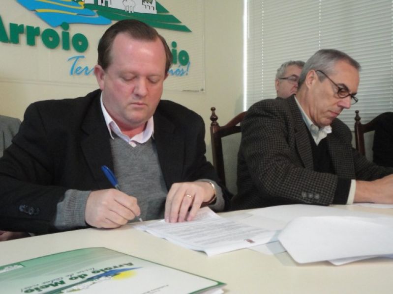 Em breve, mais precisamente a partir de junho de 2013, Arroio do Meio terá o aroma da empresa de chocolates mais antiga do país, a Neugebauer. O contrato que oficializa o início das obras da nova fábrica da empresa no município foi assinado na manhã da última segunda-feira, dia 11, no Gabinete do Executivo, na presença do Prefeito Sidnei Eckert, Diretor financeiro e de recursos humanos do Grupo Vonpar, Daniel Weiler e demais lideranças da Região. O anúncio foi feito em setembro de 2011 no Palácio do Piratini. A nova fábrica da Neugebauer prevê um investimento de R$ 120 milhões, com a duplicação da atual infraestrutura que o Grupo já mantém no município, às margens da RS 130, onde são produzidos balas e pirulitos. Com 22mil m² de área construída, a nova fábrica abrigará seis modernas linhas de produção, resultando em um aumento na capacidade de produção superior a 200% em relação à atual fábrica de Porto Alegre, que possui mais de 120 anos de história. A nova planta terá equipamentos de ponta, importados da Alemanha, Suíça e Itália, o que possibilitará a criação de chocolates diferenciados e a geração de 200 empregos diretos. –Recebemos propostas de diversas cidades e de outros Estados, mas optamos por Arroio do Meio como forma de otimizar a estrutura que já temos montada no município para a produção de balas e pirulitos, destacando também a importância dos esforços do Governo do Estado e da Prefeitura Municipal para esta parceria, o que pesou muito na hora de batermos o martelo–, afirmou o Diretor Weiler. O Prefeito Sidnei Eckert afirma que o município só tem motivos para comemorar. –Vivemos um momento de diversificação e crescimento econômico de forma harmoniosa. A Neugebauer vem para somar ainda mais ao município, com a geração de mais empregos de qualidade, o reconhecimento de Arroio do Meio em todo o Estado e um crescimento projetado por muitos anos ainda–, destaca o Chefe do Executivo. Legenda: Assinatura do contrato sela uma parceria que projeta o crescimento do município e da empresa.