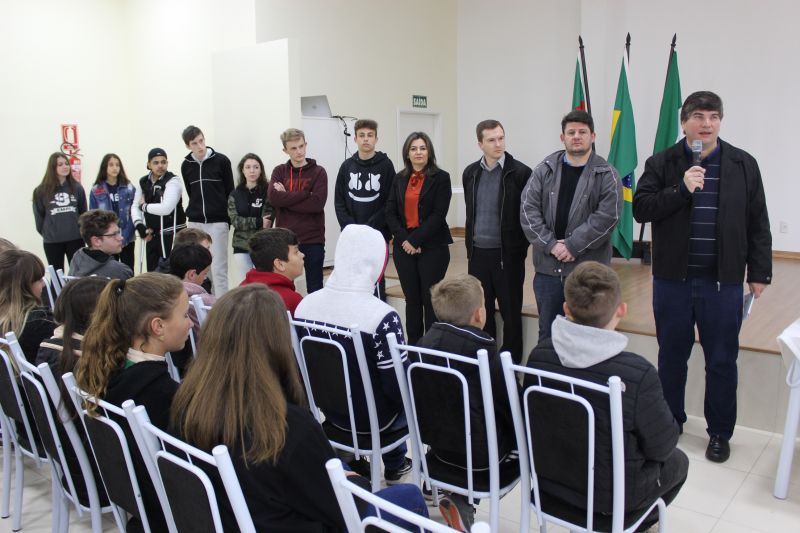 Schnack salientou que “começar por essa geração é o melhor caminho para falar de inovação”. O Prefeito falou das atividades previstas para a 1ª Semana do Empreendedorismo, dentro do programa Incentiva Arroio do Meio, numa parceria entre Poder Público, CDL e Sebrae, com capacitação e oportunidades para comerciantes, taxistas, artesãs e empreendedores. Presidente do Grêmio Estudantil da Escola Estadual Guararapes no início do Chuva de Ideias, Gustavo Fridrich agradeceu o Prefeito pela realização do projeto. “É um grande passo para a inovação”. Presidente da Câmara de Dirigentes Lojistas, Leonísia Kunzler, incentivou os adolescentes. “Tudo na vida que é uma grande obra, um dia foi uma simples ideia. Nunca desistam, nunca parem de buscar”. Coordenador da Secretaria de Indústria, Comércio e Turismo, Carlos Henrique Meneghini reforçou. “O sonho caminha junto com o empreendedor”.