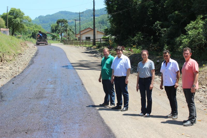 A obra iniciou com o programa Passo à Frente, há cerca de quatro meses, com o trabalho intenso da Secretaria de Obras – servidores municipais e maquinário público - na execução dos serviços de drenagem pluvial, escavação, aterro, alargamento da via e base para posterior pavimentação. O Passo à Frente prepara as vias do interior para receber o asfalto, utilizando as próprias máquinas do Município na execução da maior parte dos serviços. “O programa é um avanço e uma convicção dessa administração na capacidade dos funcionários do município na execução de pavimentações”, afirma o Secretário de Obras Paulo Heck.