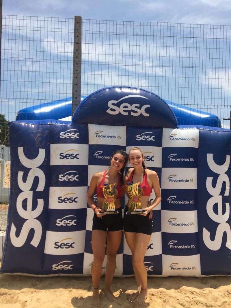 duplas Cláudia e Vitória e Alexandre e Gabriel - Voleibol de Areia - na grande final do Circuito