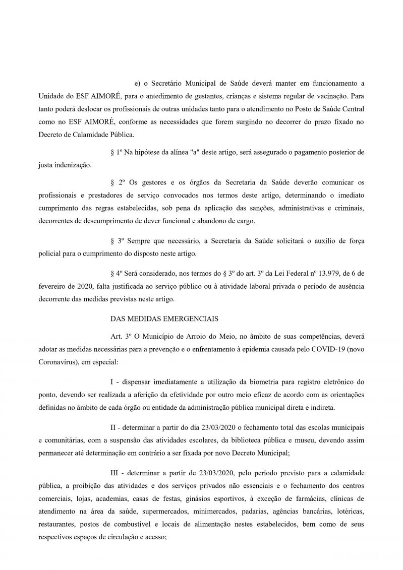 Mais detalhes no decreto municipal, através do link: http://portal.arroiodomeiors.com.br:8083/?secao=download&sub=menu&id=13094