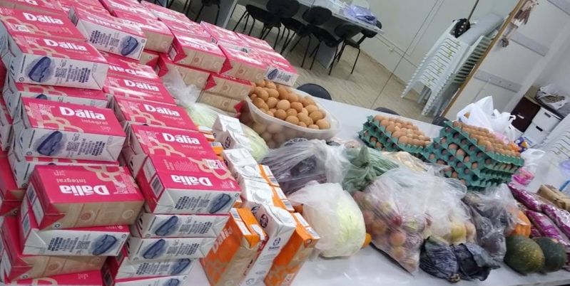 trabalho de conferência, reorganização e distribuição de alguns alimentos das