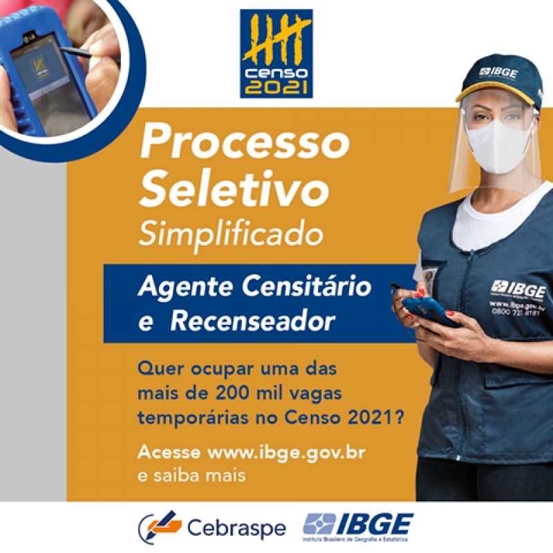 As inscrições para recenseador vão até dia 15/03 e para agentes censitário supervisor (ACS) e para agente censitário municipal (ACM) até dia 19/03.