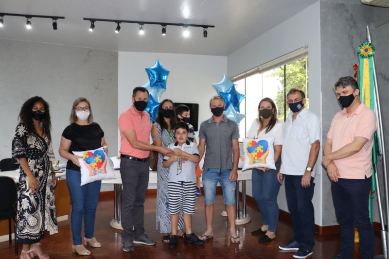O ato contou com a presença do prefeito Danilo Bruxel, da vice Adriana Meneghini Lermen, do secretário de Saúde, Gustavo Kasper, do vereador Vanderlei Majolo e da assistente social e psicóloga doAutistas recebem carteiras de identificação