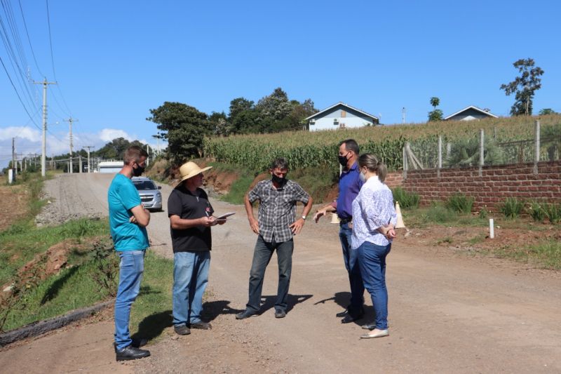 Na terça-feira, dia 13, o prefeito Danilo Bruxel, a vice Adriana Meneghini Lermen, o secretário de Obras, Darci Hergessel e o coordenador do Planejamento, Carlos Rafael Black, conferiram o local da obra que recebeu estaqueamento durante a semana.