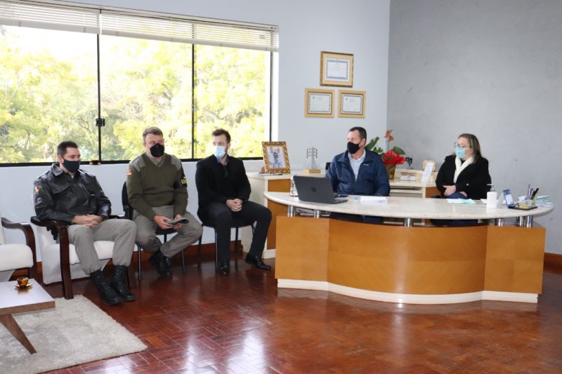 Com o intuito de debater questões relacionadas à segurança pública, foi realizada na segunda-feira, 05, uma reunião no gabinete do Executivo para tratar do assunto. Entre os presentes esteve o capitão responsável pelo comando do município, Jorge Luis Engster, o delegado Humberto Roehrig e o responsável pelo 22º Batalhão da Polícia Militar, major Fábio Kuhn.