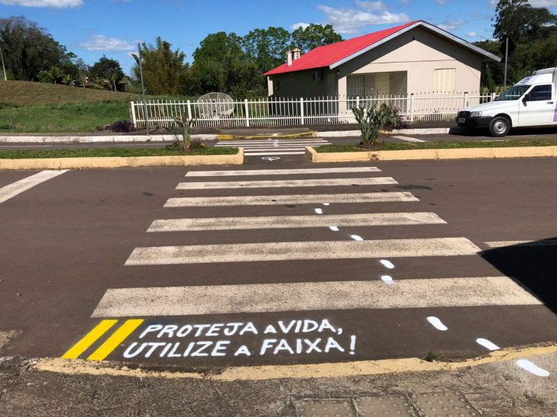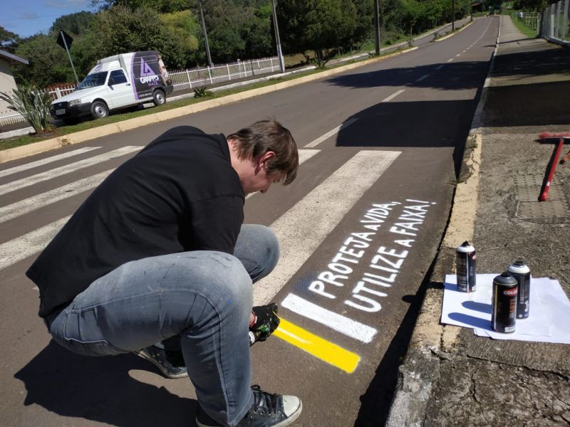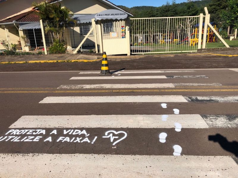 Uma das ações foi realizada nos últimos dias com a pintura de faixas de segurança nas proximidades das escolas. O trabalho foi realizado pelo professor Samuel Hergesell trazendo mensagens com o objetivo de aumentar a segurança dos usuários.