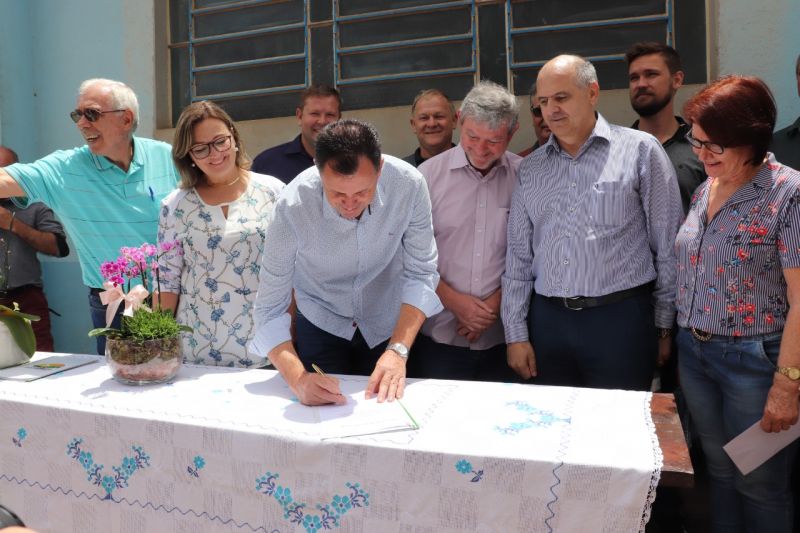 A assinatura do contrato de início das obras foi realizada junto com a empresa Giovanella, vencedora do processo licitatório e responsável pela execução da obra. O ato contou com a presença de autoridades, líderes locais e comunidade.