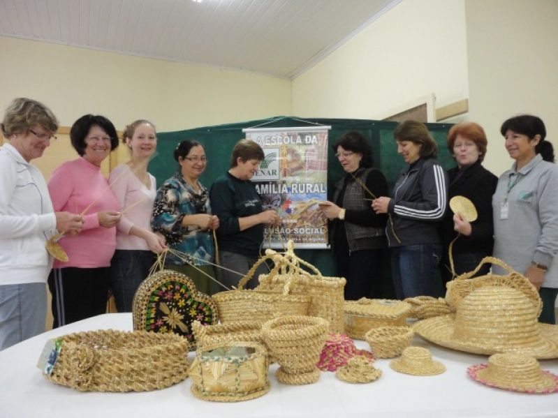 Flores, bolsas, baús, porta-cuias e outros artefatos de palha de trigo estão sendo confeccionados essa semana no Curso de Artesanato em Palha de Trigo, promovido pela administração municipal, sob coordenação da instrutora do Serviço Nacional de Aprendizagem Rural (SENAR), Eva Danila de Moura. As aulas iniciaram na terça-feira, dia 11 e seguem até amanhã, na Secretaria de Educação e Cultura, somando 32 horas de aprendizado. Dentre os conteúdos abordados, as dez alunas participantes aprenderam técnicas de preparação da palha para armazenamento, tingimento, trançado, e confecção de peças. Entre as alunas, presença de artesãs profissionais, assim como de gente sem conhecimento na área, em busca de um aprendizado diferente. A dona de casa aposentada, Terezinha Hergessel, inscreveu-se no curso com a intenção de aprender a produzir peças para presentear amigos e enfeitar a casa. Já a artesã Dalva Spohr, uma das fundadoras da Associação das Artesãs de Arroio do Meio, buscou a nova técnica visando qualificar-se e incrementar a profissão. Na hora de falar sobre o curso o discurso de ambas foi o mesmo: –Muito bom, gostamos bastante–. Mais de 20 cursos gratuitos de qualificação já foram realizados no município de 2010, sob orientação dos instrutores do Senar, envolvendo cerca de 300 produtores rurais e comunidade, com o objetivo de qualificar, fomentar e valorizar as agroindústrias e o artesanato locais. Legenda: Em 32 horas de curso, alunas aprendem diversas técnicas com a palha de trigo. Fotos: Maica Viviane Gebing Texto: Assessoria de Imprensa