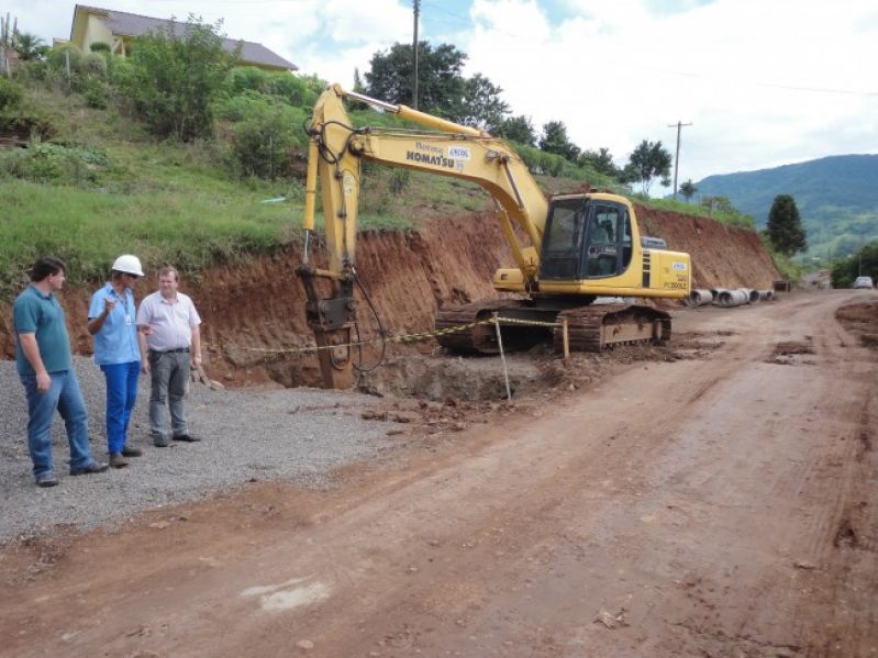 Está sendo executada essa semana a drenagem pluvial da estrada geral de Arroio Grande, no trecho de 720m de extensão que receberá pavimentação asfáltica. Segundo o Secretário de Planejamento Henrique Meneghini, estão sendo instalados tubos de concreto de 40, 50 e 60 centímetros de diâmetro, conforme a necessidade de captação das águas pluviais ao longo da via. Já foram executados os serviços de remoção de material inadequado, alargamento da rua, nivelamento do acostamento e terraplenagem da via. A obra contempla a pavimentação do trecho que segue do bairro Bela Vista em direção à Arroio Grande, num investimento de R$ 750 mil, via recurso de financiamento do município junto ao Badesul, contando com a participação dos moradores locais, no pagamento do acostamento asfáltico. As próximas etapas conferem a execução de bocas de lobo para a captação da água da chuva, regularização da via e colocação da base de brita graduada, para posterior execução da capa asfáltica. Legenda: Prefeito Sidnei Eckert e Secretário de Planejamento, Henrique Meneghini, acompanham a obra, junto ao responsável pela empresa contratada para a execução da mesma. Fotos: Maica Viviane Gebing Texto: Assessoria de Imprensa