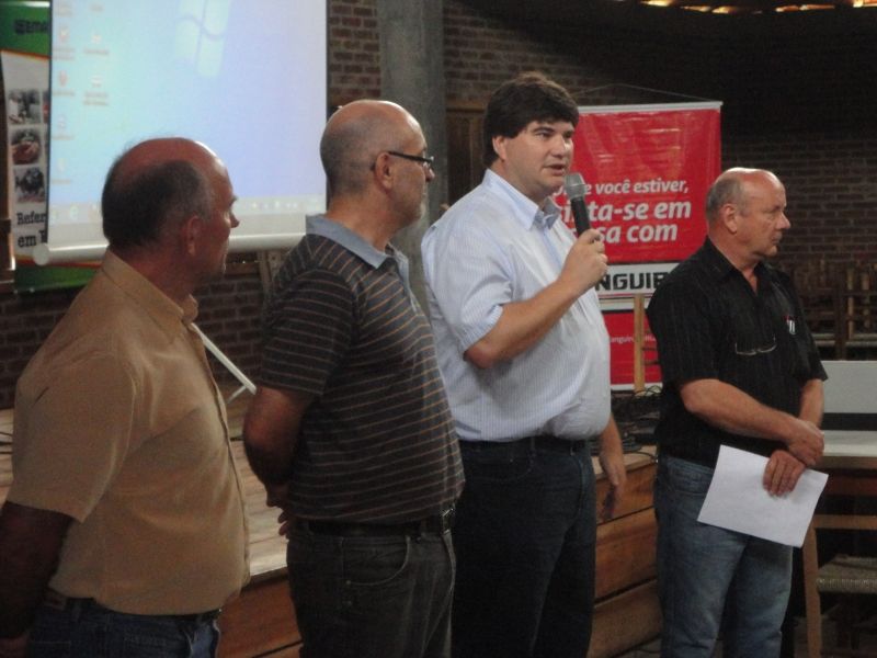 Cerca de 80 produtores participaram do IV Seminário do Leite, realizado na última quinta-feira, dia 29, no CTG Querência do Arroio do Meio. O prefeito em exercício, Klaus Werner Schnack, fez a abertura do evento, lembrando da iniciativa do primeiro seminário, em 2009, e destacou a força do setor primário no município e Região. –O maior desafio é garantir o aumento da produtividade, junto à melhoria das condições de trabalho–. Em seguida, o assistente técnico regional em Bovinocultura da Emater, Lauro Bernardi, saudou a escolha do tema do Seminário. –Leite de qualidade é resultado de solo e pasto de qualidade–, afirma. Na parte da manhã os produtores acompanharam uma breve apresentação do Engenheiro Agrônomo da Emater, André Muller, falando sobre os tipos de solo existentes no município. Logo após, o professor de Agronomia da Universidade Federal do Rio Grande do Sul (UFRGS), Renato Levien, abordou questões sobre –Qualidade física do solo da pequena propriedade na atividade leiteira–, abordando aspectos da erosão, do preparo do solo, das formas de pastejo e da compactação do solo. Após intervalo para o almoço, o Seminário seguiu à tarde, quando o engenheiro agrônomo, doutor em Manejo de Plantas de Plantas de Lavoura da Embrapa de Passo Fundo, Henrique Pereira dos Santos, apresentou o tema –Alternativas de manejo de solos em pequenas propriedades leiteiras–. O IV Seminário do Leite fez parte da programação especial dos 78 anos de aniversário do município, numa realização da administração municipal, por meio da Secretaria de Agricultura e Emater/RS-Ascar, com apoio do Sindicato dos Trabalhadores Rurais (STR) e Conselho Arroio-meense de Desenvolvimento Rural (Conar). Legenda: Prefeito em exercício falou da força do setor primário na Região. Fotos: Maica Viviane Gebing Texto: Assessoria de Imprensa